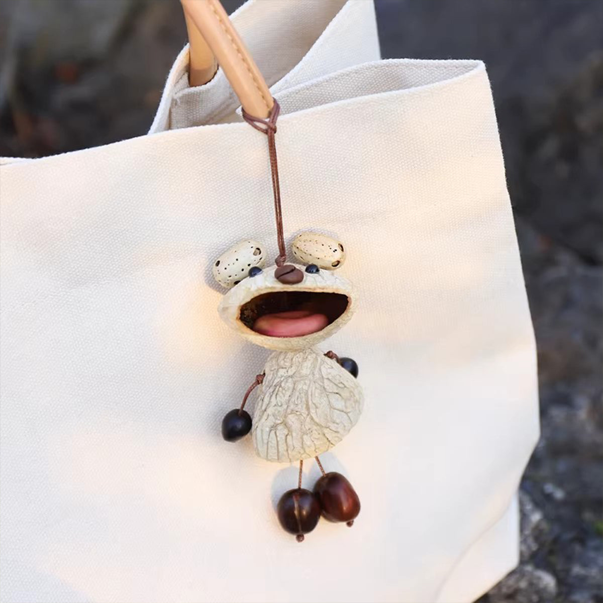Handmade Shell Big Mouth Bear Charm - Cute Bag Pendant Healing Wind Chime Gift