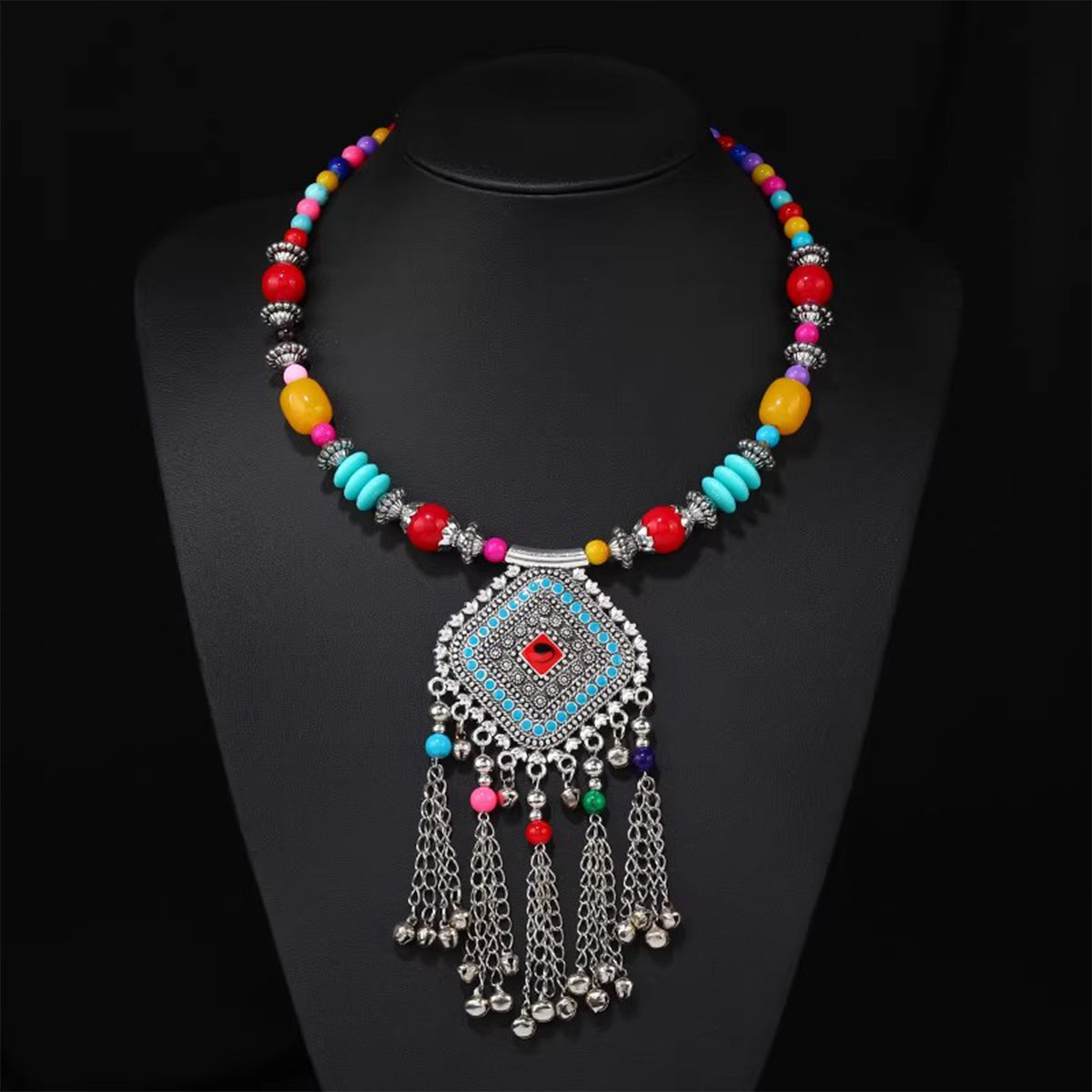 Retro Ethnic Tibetan Necklace - Bell Tassel Colorful Beaded Choker & Sweater Chain, Perfect for Ethnic & Casual Outfits
